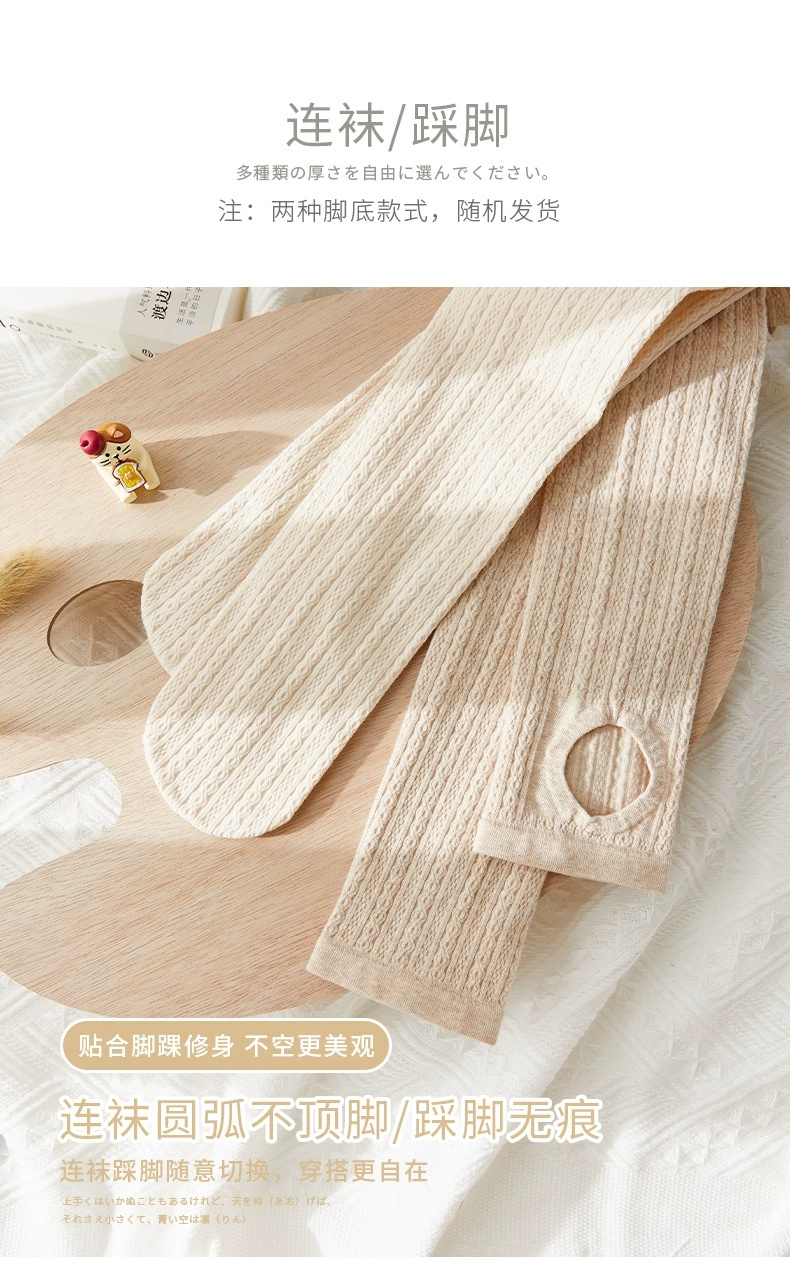 秋季高个子复古麻花连裤袜175个子棉质打底裤加长春秋薄款外穿白