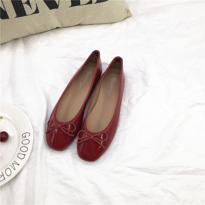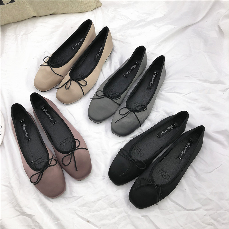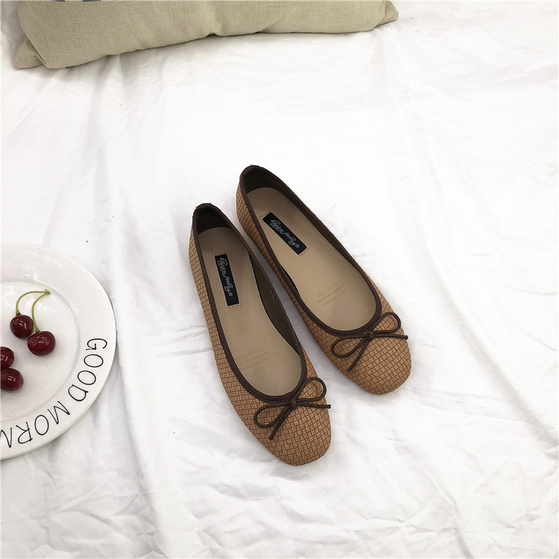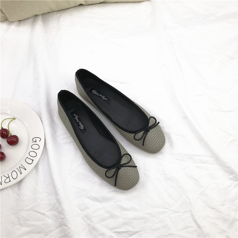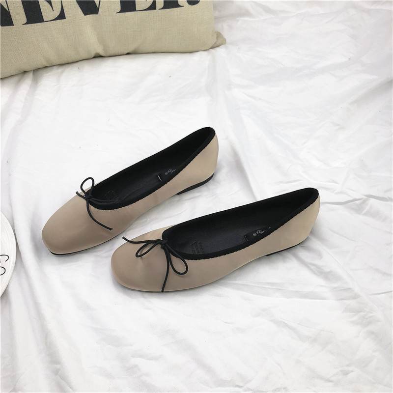 鞋子女韩版CHIC百搭简约休闲圆方头浅口软平底芭蕾舞豆豆奶奶单鞋