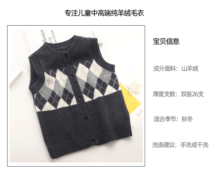 儿童毛衣背心男童女童纯山羊绒马甲韩版中大童羊毛针织衫加厚打底