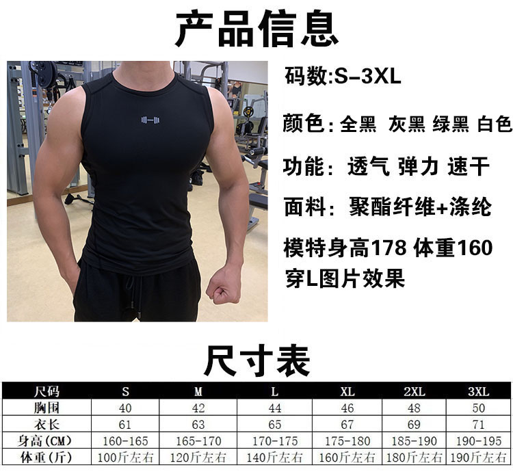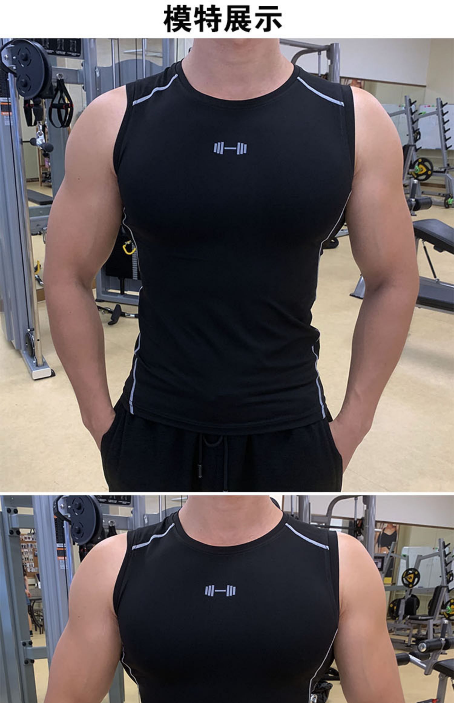 紧身衣男士透气弹力速干运动背心薄款健身训练无袖跑步篮球打底衫