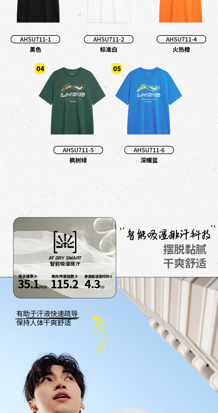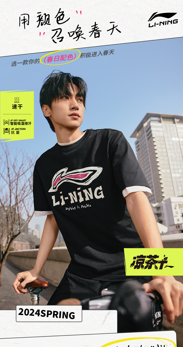 李宁凉茶短袖 | T恤男士新款运动时尚春季圆领休闲针织运动服