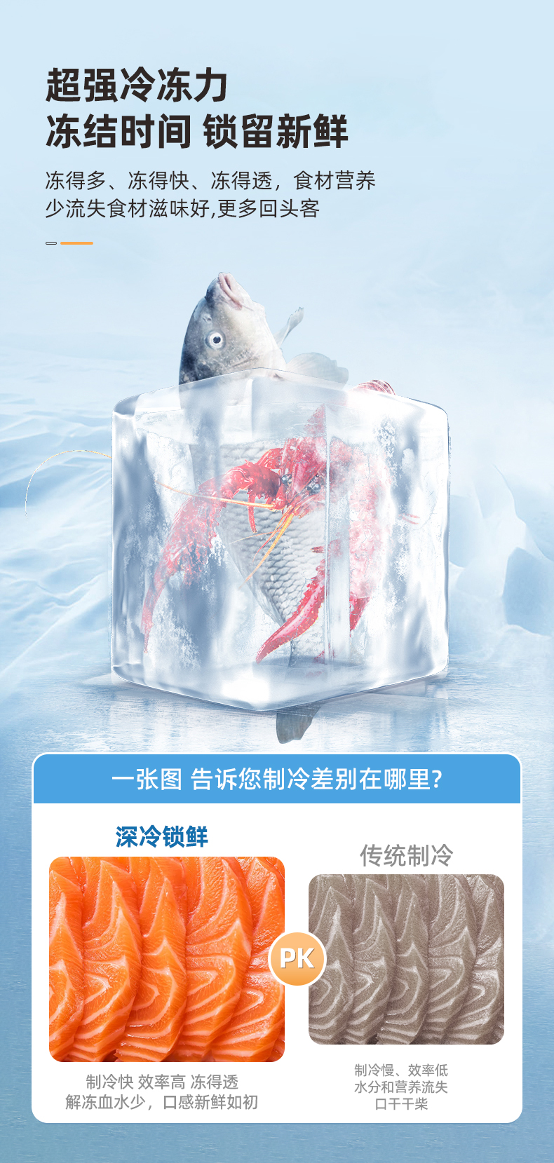 新飞218L冰柜一级能效家用商用两用冷藏冷冻双温卧式小型节能冷柜