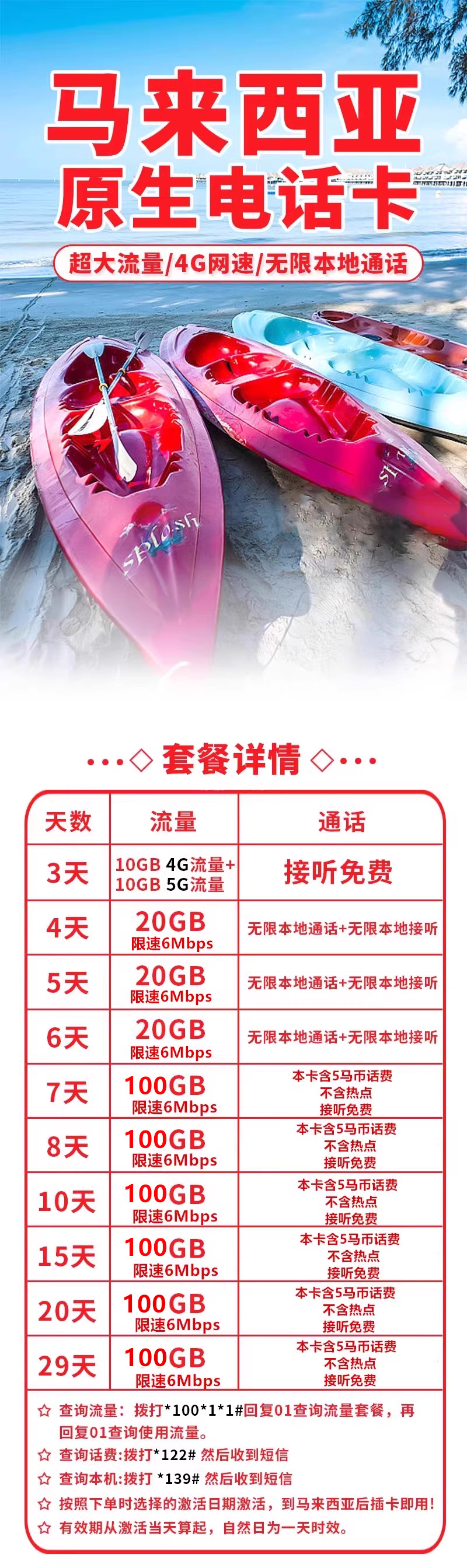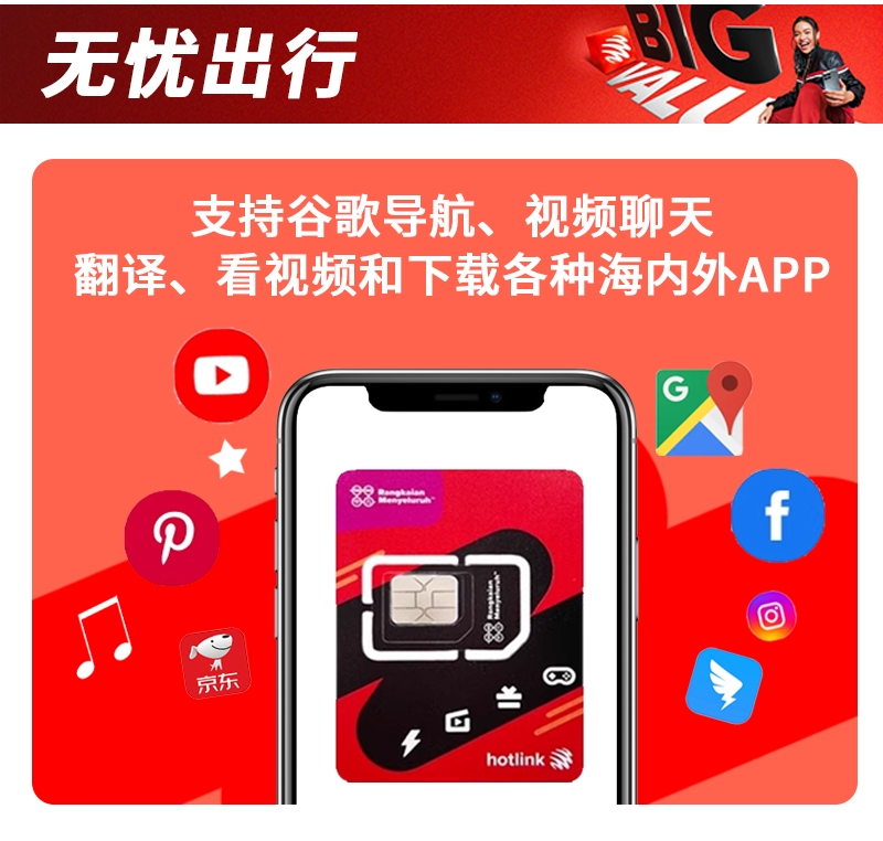 马来西亚电话卡hotlink手机上网卡可选100G5G/4G流量卡吉隆坡沙巴